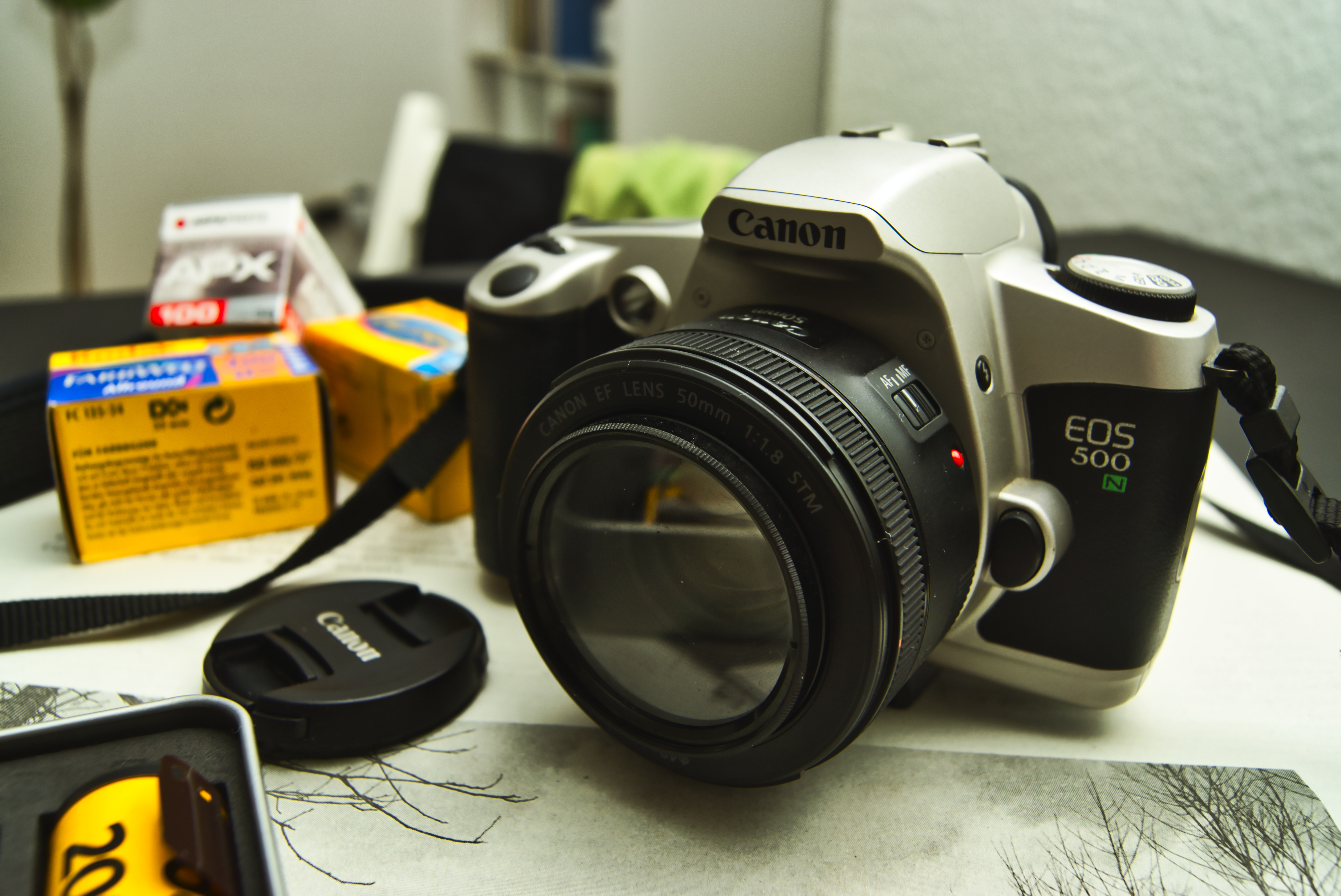 Meine EOS 500N ist aus Familien beständen und lag zwischen 2007 und 2017 mit einem Film geladen in einer dunkeln Ecke. Als ich die Kamera 2017 reaktivierte war es für mich der Wiedereinstieg in die analoge Fotografie. Damals zwar noch sehr zaghaft, ohne eigene Dunkelkammer und mit weniger als einem belichteten Film pro Jahr, aber immerhin ein Wiedereinstieg. Heute begleitet mich die Kamera immer noch von Zeit zu Zeit und ist eigentlich immer einsatzbereit.