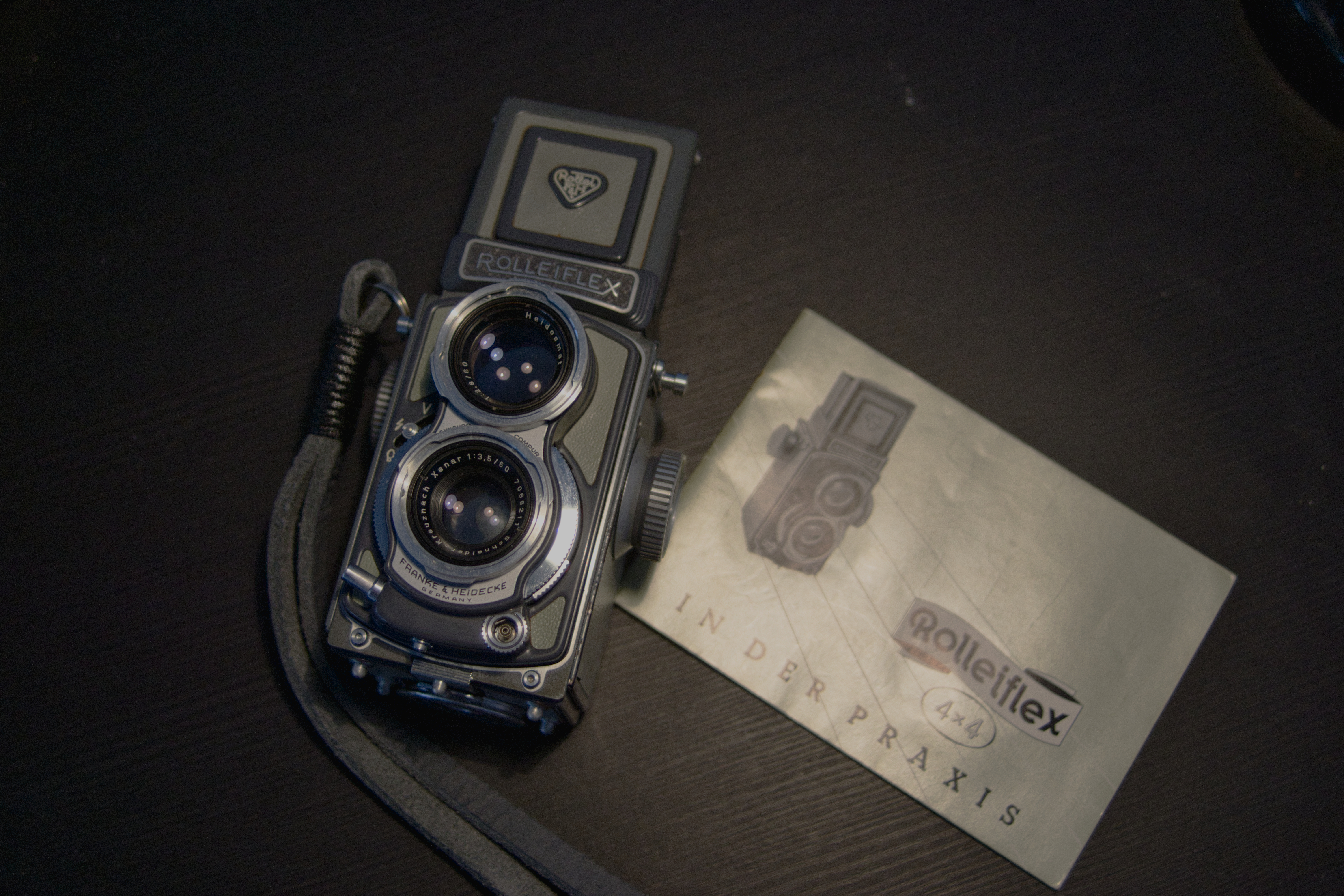 Die Rolleiflex 4x4 wurde in drei Serien hergestellt. Die erste Serie wurde zwischen 1957 und 1963 mit einer Stückzahl von 62.250 Stück produziert. In dieser Serie wurden die Kameras in dem grauen Farbton hergestellt. Die Kameras in dieser Farbe wurden während der zweiten Serie eingestellt. Die Rolleiflex 4x4 ist eine zwei äugige Spiegelreflexkamera (TLR), mit komplett mechanischer Funktionsweise. Die Sucheroptik ist eine Heidosmat 60mm f/2,8, die Fotooptik ist eine Schneider Xenar 60mm f/3,5. Die Kamera verfügt über Belichtungszeiten zwischen 1/500sek und 1sek bzw. „B“.
